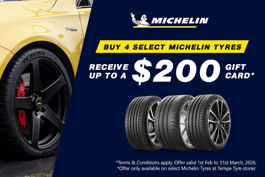 Upgrade your drive and get rewarded. For a limited time, purchase 4 selected Michelin tyres and receive up to a $200 Gift Card.